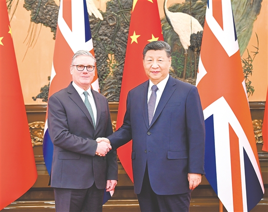 新华社北京1月29日电 1月29日上午,国家主席习近平在北京人民大会堂会见来华进行正式访问的英国首相斯塔默。双方同意中英要发展长期稳定的全面战略伙伴关系。
