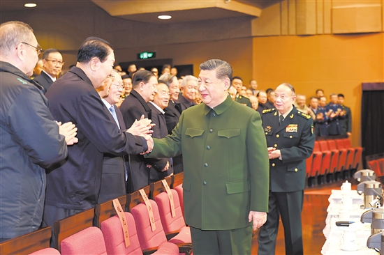 下午4时许,习近平来到老同志中间,全场响起热烈掌声。习近平同大家亲切交流、互致问候,关切询问他们的身体和生活情况,共同回顾过去一年党、国家和军队事业走过的不平凡历程、取得的重大成就。老同志们一致表示,要更加紧密地团结在以习近平同志为核心的党中央周围,坚持以习近平新时代中国特色社会主义思想为指导,深入贯彻习近平强军思想,深刻领悟“两个确立”的决定性意义,坚决做到“两个维护”,贯彻军委主席负责制,弘扬光荣传统、永葆政治本色,坚定信念、勇毅前行,为如期实现建军一百年奋斗目标、高质量推进国防和军队现代化作贡献。