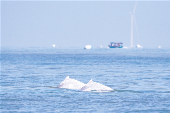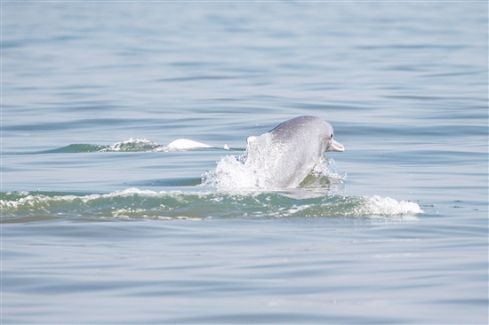 图为2月4日在海南岛西南海域拍摄的中华白海豚。新华社发