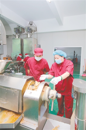 江门食用油企业在创新中寻找发展空间。图为翁大妈自主研发的高温杀菌脱衣一体机。