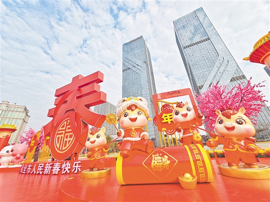 春节临近,江门街头处处洋溢着喜庆祥和的节日氛围。从主干道到公园广场,各式新春装饰将街头装点一新,让市民在浓郁的传统氛围中迎接马年的到来。