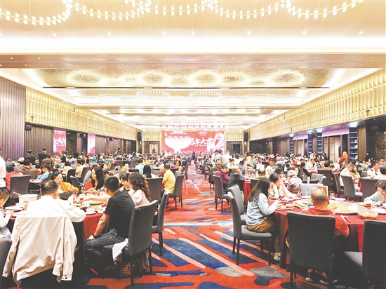 在金汇酒楼,市民曹女士正和家人围坐一桌,乐享美食。曹女士在外地工作,今年特意提前从工作城市返乡,与家人团聚,还带着新婚的丈夫一起感受家乡的新春氛围。