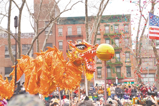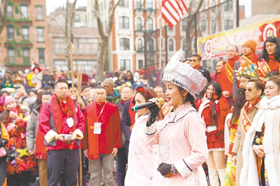 2月17日,美国纽约中国城举行“新春炮竹文化庙会”,舞龙、舞狮、歌曲演唱、燃放炮竹等丰富的现场活动吸引数千人前来感受浓郁的中国年味。新华社发