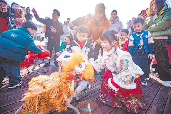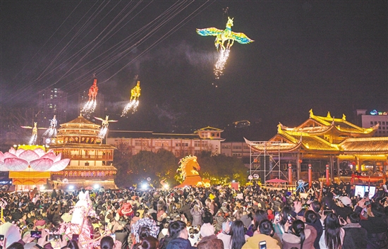 春节期间,各地民俗活动红火热闹、庆祝展演精彩纷呈、节日装饰耀眼璀璨,人们欢天喜地过大年。 新华社发