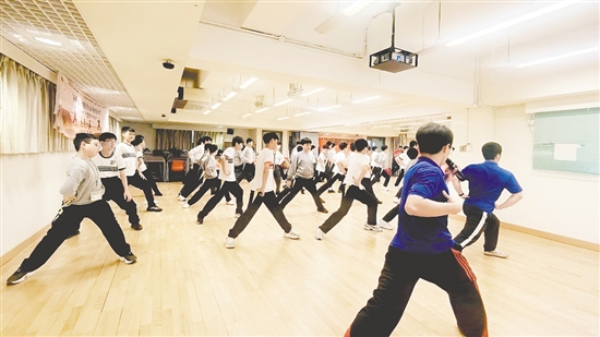 3月2日,香港可风中学内,一声声清脆有力的“哼!哈!”呐喊声响彻校园,来自新会蔡李佛始祖拳会的传承教练们正带领着70多名香港中学生学习蔡李佛拳的基础招式。半个月前,新会蔡李佛始祖拳会登上央视总台非遗晚会的舞台,向全国观众展示侨乡武术的磅礴风采。