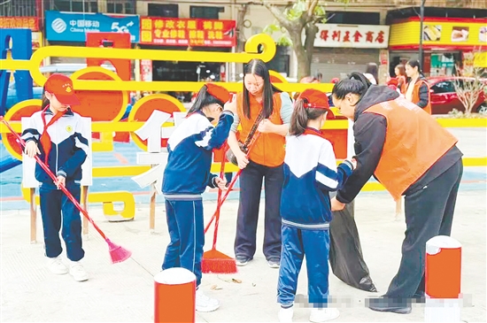 江门日报讯 (文/图 记者/敖转优) 日前,开平市长沙街道侨园路小学组织开展“大手小手齐动手,共建共享美家园”主题志愿服务活动。师生代表与家长志愿者约30人以实际行动践行雷锋精神,让学生感悟劳动价值。