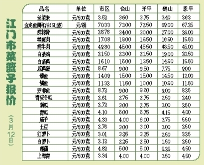 江门市菜篮子报价